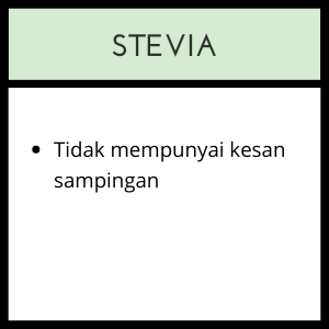 Saya gunakan pemanis stevia Gred A yang lazat. Ianya 300x ganda lebih manis dari gula.